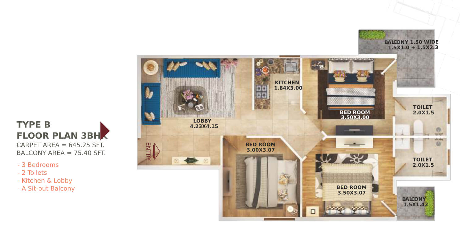 Moreover, Full Power-Backup and 24*7 Security under CCTV Surveillance.